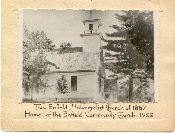 Feb 9, 1853 ten men formed a group called the North Enfield Universalist Meeting House Association to take charge of the new church property and keep it in repair. Their last meeting was in 1881.